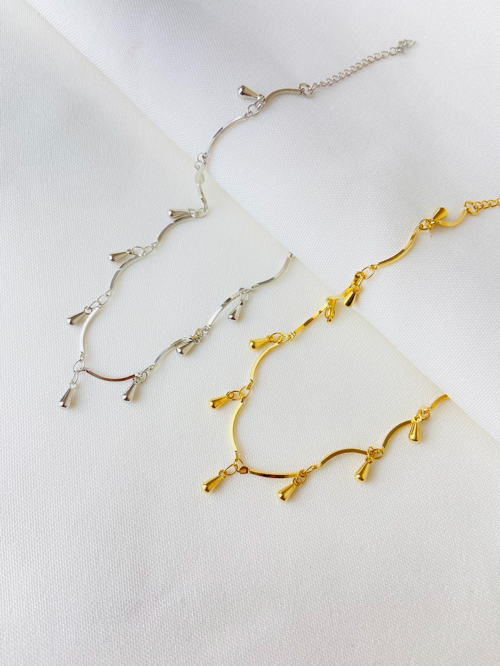 Pulseira Penduricalhos em Gotas: uma peça que exala elegância e charme. Com um design delicado, seus penduricalhos em forma de gotas criam um efeito visual deslumbrante, ideal para elevar qualquer look.
